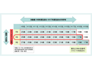 1997年4月2日~2008年4月1日生まれの女性(1997年度生まれ~2007年度生まれ)