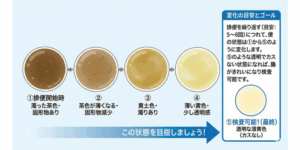排便を繰り返すと、便が徐々に透明になっていきます。 最終的に「尿のような透明で黄色っぽい液体(カスが全くない状態)」になれば準備完了です。