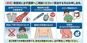 以下に該当する方は、必ず検査予約時、または事前に医師へご相談ください。自己判断で薬を中断しないでください。
