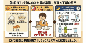 🌙 【ステップ3】検査前日夜の過ごし方 ~食事の調整・下剤の服用~